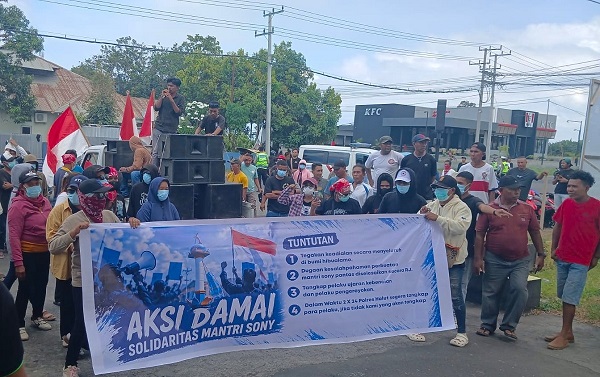 Dalam aksi tersebut, massa menyampaikan sejumlah tuntutan ke Polres Halut, yaitu menegakkan keadilan secara menyeluruh di Bumi Hibualamo tanpa diskriminasi dan menghentikan kriminalisasi terhadap korban, mengusut serta menangkap pelaku ujaran kebencian dan ancaman pembunuhan terhadap Mantri Sony melalui akun Facebook “M. Sangpijar Daga”, menangkap pelaku pengeroyokan terhadap Mantri Sony.