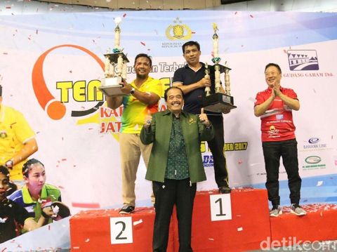 Machfud Arifin ketika masih menjabat Kapolda Jatim pernah menggelar kejuaraan nasional tenis meja. Ia menang untuk kategori pejabat. (Foto-foto: Detik.com)