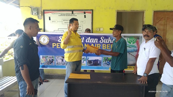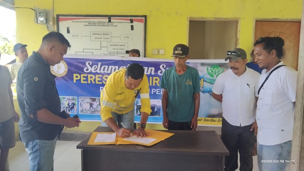 Peresmian serta penandatanganan berita acara serah terima revitalisasi sarana air bersih kepada pihak desa dilaksanakan pada Rabu (18/02/2026) di Balai Desa Pasir Putih. Kegiatan tersebut dihadiri Pemerintah Desa, Badan Permusyawaratan Desa (BPD), perwakilan masyarakat penerima manfaat, serta tim NHM Peduli.
