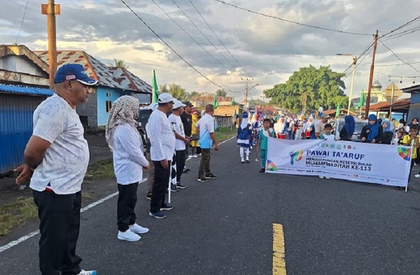 Sebelumnya, pawai tersebut dilepas secara resmi oleh Wakil Bupati Halut, Dr. Kasman Hi Ahmad, dan ikuthadir Ketua TP-PKK Halut Hj. Masliha Kasman, sejumlah pimpinan OPD, camat, kepala desa, jajaran Pimpinan Daerah Muhammadiyah (PDM), ortom, hingga para kepala sekolah dan pelajar dari seluruh amal usaha pendidikan Muhammadiyah.