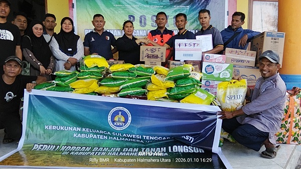 HARIANHALMAHERA.COM– bencana alam berupa banjir hingga longsor yang menerjang 4 Kecamatan di Kabupaten Halmahera Utara (Halut), ternyata ikut diprihatin oleh Kerukunan Keluarga Sulawesi Tenggara (KKST) Halut. Sebagai wujud empati dan kepedulian terhadap korban terdampak bencana tersebut, Sabtu (10/1) siang tadi, pihaknya turut berikan bantuan.