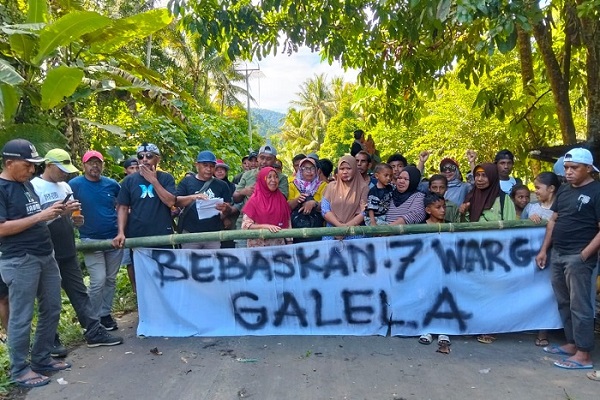HARIANHALMAHERA.COM– warga Galela, Kabupaten Halmahera Utara (Halut) yang tergabung dalam Aliansi Galela Menggugat (AGM), Rabu (29/10), terpaksa nekat melakukan penutupan ruas jalan Trans Halmahera Barat-Halmahera Utara (Halbar-Halut). Tindakan tesebut dilakukan sebagai protes keras terhadap penahanan 7 warga Galela yang dijerat kasus dugaan tambang ilegal sekaligus mendesak Kejaksaan Negeri (Kejari) Halbar untuk bebaskan terdakwa.