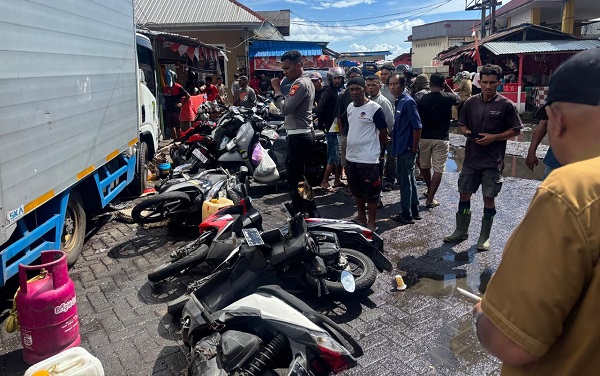Informai yang diterima dari sejumlah saksi di tempat kejadian perkara (TKP), ternyata mobil box berwarna putih dengan nomor polisi DG 8773 KB, itu bermuatan sembako hendak distribusikan ke sejumlah warung di pasar tersebut. Namun, mendadak hilang kendali hingga akhirnya menabrak sejumlah sepeda motor terparkir.